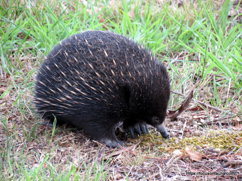 Just after we put a post about Short-beaked Echidnas on this blog in early January, we discovered an echidna burrow with a puggle (young) in it only 30m from our house, and the adult featured in that post was most likely the mother. We only located the burrow when we noticed a small patch on an old pile of top-soil was moving up and down, as if it were “breathing”. When a bit of soil was brushed away, a creature with short sharp spines was revealed.