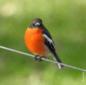 First back, that is now, are the Flame Robins (Petroica phoenicea), pictured left. The scientific name comes from the Greek petros meaning rock, oikos meaning dwelling place and phoenicius meaning scarlet i.e. scarlet rock-dweller – a nod to the habitat where the type specimen for robins comes from, Norfolk Island.