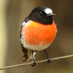 Robins usually roam the landscape as part of a mixed flock of birds. Later on in the season they will be joined by Scarlet Robins (Petroica boodang) forming a colourful and noisy group. At first glance the two species look identical but the Scarlet Robin is black (as opposed to grey), has a black throat and a large white flash on the forehead (pictured right).