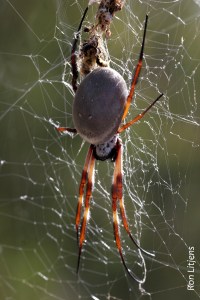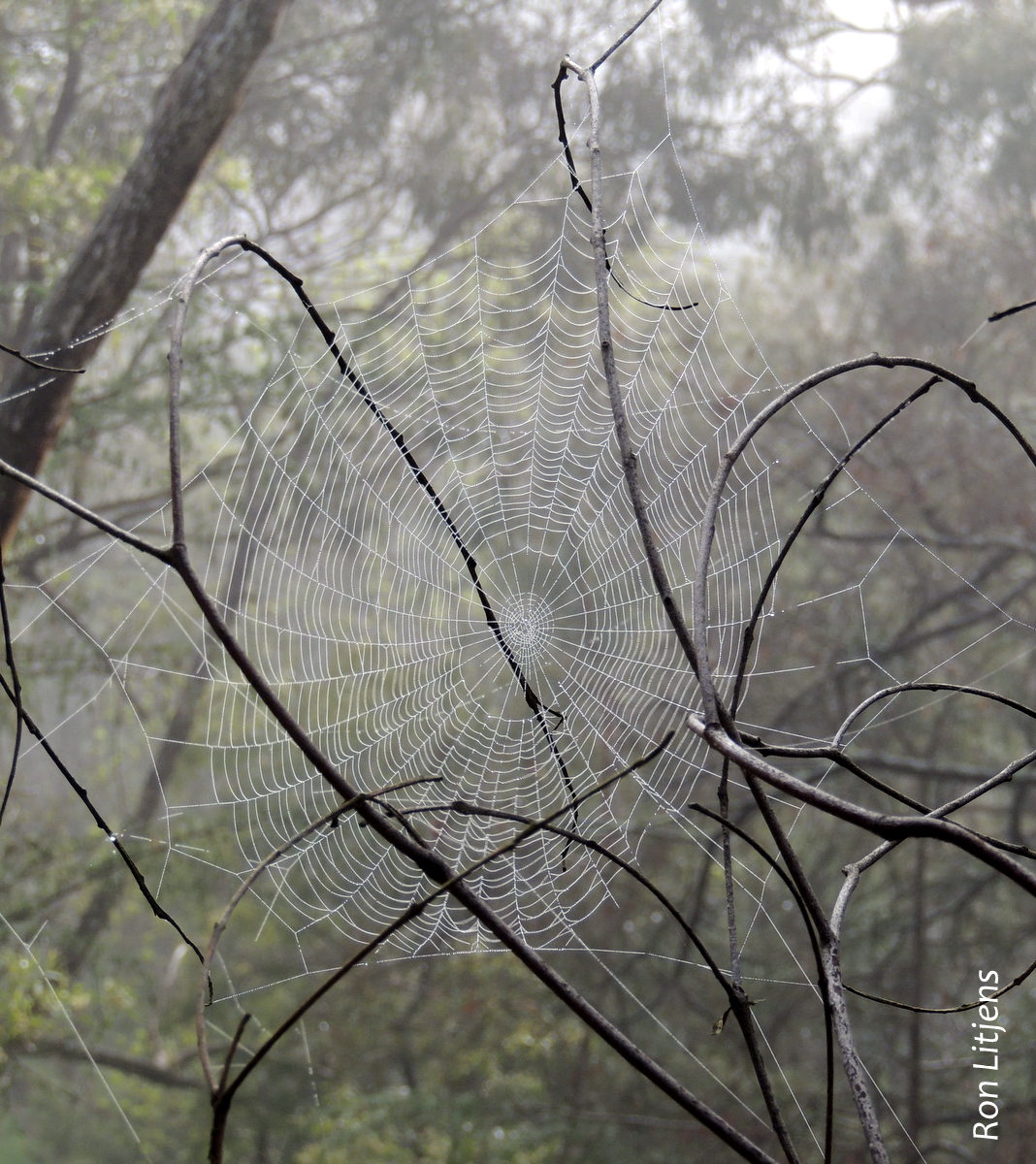 For most people the stereotypical spider web is the flat wheel-like structure seen suspended between bushes or on fences (pictured left). These are constructed by a group of spiders known as Orb-weavers, in English the word ‘orb’ infers ‘roundness’. These spiders are found all over the world. As with any large group of fauna there are no strict rules – not all orb-weavers build orb-shaped webs and there are some spiders that are not orb-weavers that do build orb webs (it’s not the web that defines the spider!).