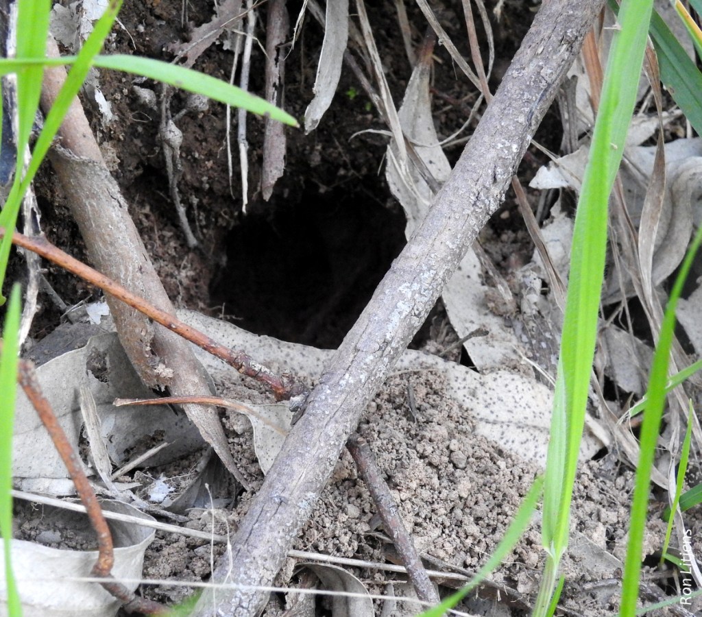 The two birds I was watching dropped to the ground and scurried to the nearby road bank and started digging into the side of the bank (pictured right). Spotted Pardalotes nest in horizontal oval chambers usually connected to the outside world by a tunnel up to 1.5 metres long. The nests are usually built in riverbanks and embankments but have been found excavated in piles of builders sand on housing sites. The nest is lined with shredded bark. A neighbour of mine built a successful nest box from agricultural poly-pipe leading to a wooden box.