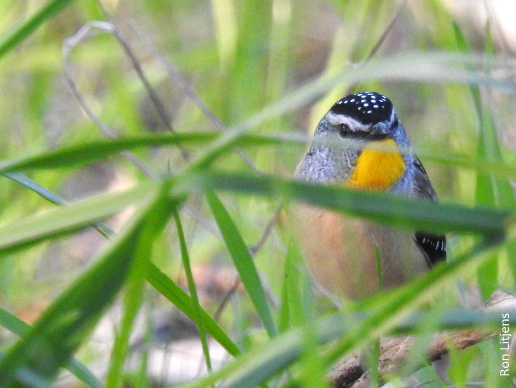 Whilst waiting, two Spotted Pardalotes (Pardalotus punctatus) slowly made their way down a nearby tree, branch by branch, chirping loudly as they went. These are exquisitely coloured birds (pictured left) not often seen because they feed on lerp, the honeydew/wax houses that the nymphs of psyllid insects construct to live in. Psyllid nymphs are generally found on young eucalypt leaves i.e. at the top of a tree hence this is where pardalotes hang out.