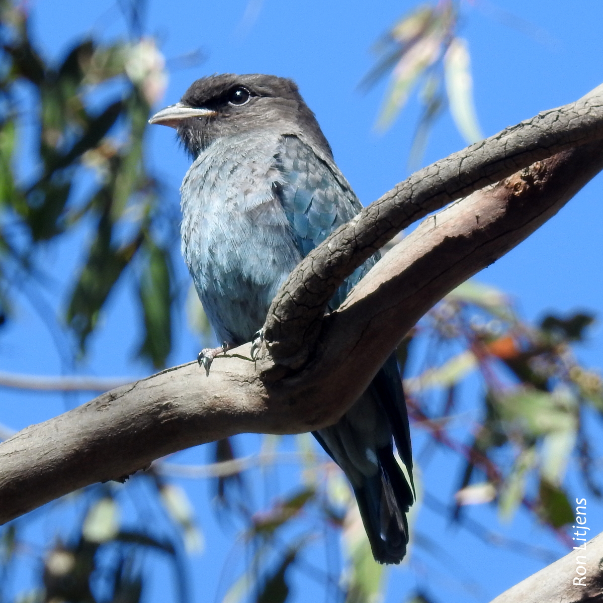 I am not an experienced birdwatcher so there are still occasions when I see a lifer. Yesterday I heard a bird call (my time with the Murrindindi birders is paying off!) I had never heard before. Perched high in a eucalypt was a bird I had never seen – dark head with a deep blue sheen on its body. It was a Dollarbird (Eurystomus orientalis). The scientific name comes from the Greek eurustomos meaning wide mouth and orientalis meaning eastern.