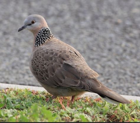 The Spotted Dove was introduced to Australia in the 1860s and flourished in urban environments. Its origin is in China and India. I think it was introduced because it is good to eat, but we stopped eating wild pigeons a long time ago. It has dominated the ground-foraging, seed-eating pigeon role probably displacing the Bronzewings. They have been a useful disperser of seed and an important prey species for Goshawks and Falcons. Their nest is a flimsy platform in a bushy mid-level tree.