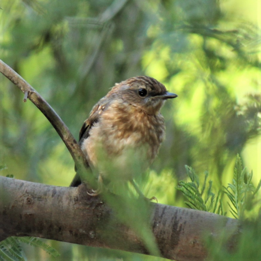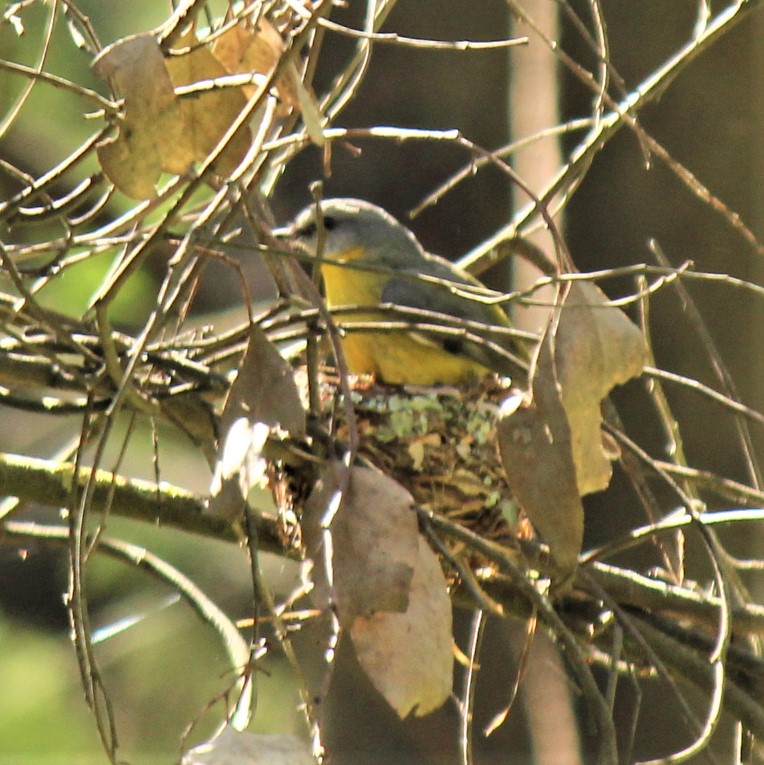 Though I always try to keep my distance from a nesting bird, this Eastern Yellow Robin in the Yea Wetlands makes little effort to hide itself or its nest. There seem to be several pairs nesting at the moment and although the one pictured at the nest has very young chicks, some parents have got ahead in the race. I found one very young individual with rich brown plumage moving alone through the trees by the river. It will probably still get occasional feeding from its parents, like a teenager still likes to go home for Sunday lunch, but I saw no adult while I was watching, making me unsure of its identification till I checked up later.