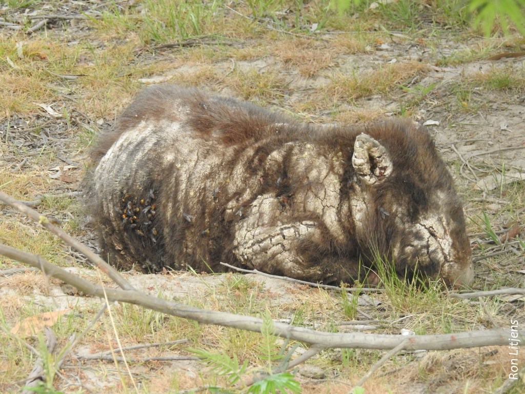 Traveling around the district on my daily cycle ride gives me the opportunity to photograph some amazing fauna but sometimes one comes across a tragic sight (pictured below left), a wombat with mange. Mange is caused by the parasitic mite Sarcoptes scabiei. The female mite burrows under the skin of the host and lays eggs. When the eggs hatch it causes extreme discomfort. In humans this is called scabies.