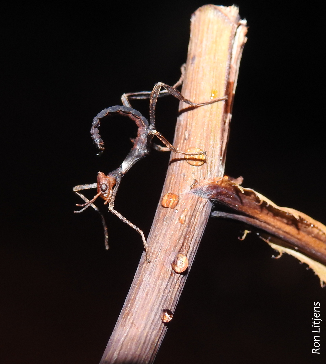 Last week a squeal of delight from EM heralded the arrival of the first offspring (pictured left). Given its parthenogenetic origin it is safe to say that it looks (or will look) just like Mum although measuring a mere 5mm in length it has a long way to go to match Mum’s 14cm size.