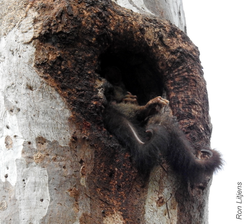 Almost half of Australia’s arboreal mammals and about 20% of our bird species live in tree hollows. Hollows however are at a premium. It takes about 80 years for a tree to develop hollows and a couple of hundred years for those hollows to become big enough to accommodate large fauna. Removal of old growth trees due to logging and agricultural clearing practices makes any remaining hollows hot property in the faunal real estate market.