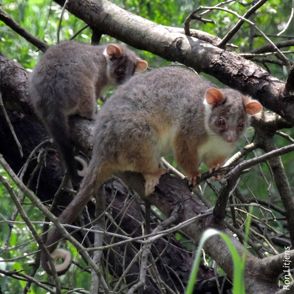 Ringtail possums are distributed along the east coast of Australia and also Tasmania. Unlike Common Brushtail Possums that are solitary creatures preferring tree hollows to sleep in, Ringtails are gregarious in nature and prefer to live in dreys, spherical structures made out of tree branches and sticks and lined with leaves and bark.