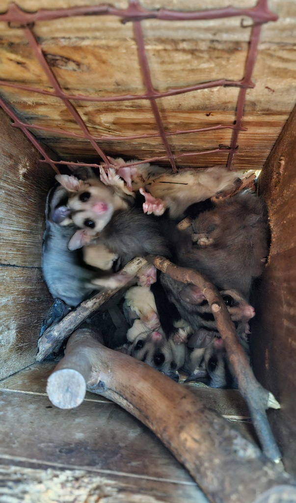 Australian has unique fauna in that many of it’s birds and animal use tree hollows for breeding or shelter sometime in their lifecycles. Seventeen percent of bird species, 42% of mammals and 28% of reptiles use tree hollows (Gibbons and Lindenmayer 1997). They include bats, possums, gliders (pictured below left), owls, parrots, ducks and kingfishers.