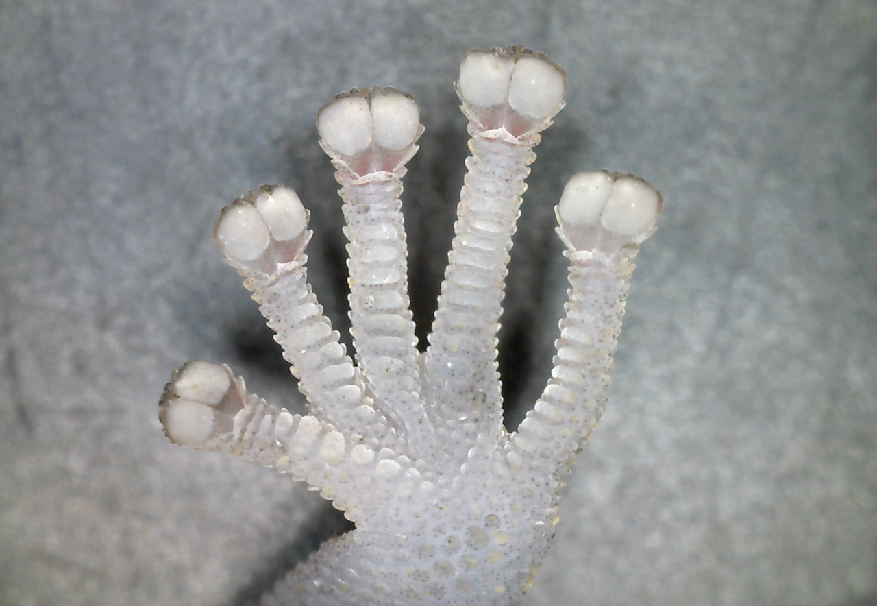 It turns out the geckos ability to walk up windows is not due to suction cups on its toes as I thought as a kid but is due to millions of tiny hair-like structures called setae under each foot. The setae are made of similar materials as our finger nails and are tiny – much tinier than can be observed on the underside of the gecko’s foot pictured right. On each toe between each of the pads is a tiny retractable claw. Each setae has thousands of flat structures on them that further increase the contact surface area between the gecko and the glass. So effective is the arrangement that a gecko’s feet can support well over 100kgs.