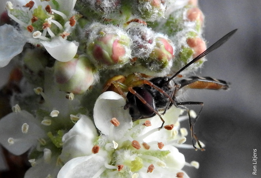 Another strategy albeit a lazy one is to hide in flowers and simply ambush the prey as it comes in the feed (pictured above left).