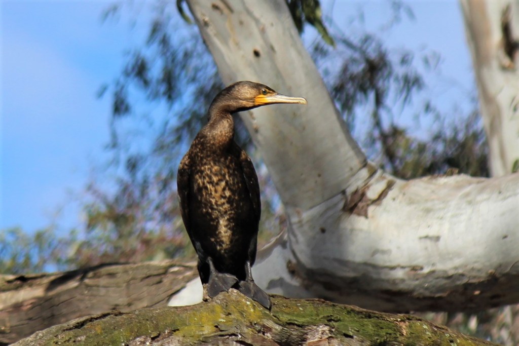 2. Of the 2 black cormorants, one is all-black (the Little Black Cormorant Phalacrocorax sulcirostris), the other (the Great Cormorant) has a yellow face – and in juvenile phases has various patches of white or off-white that can be confusing.