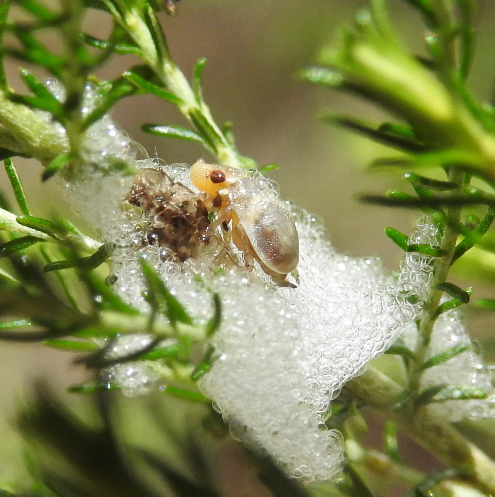 Both adult and young Spittlebugs suck the sap of plants. Young nymphs create a protective environment in which to live by excreting the excess water from the sap in the form of a foam, pictured left. The foam serves several purposes. Firstly it creates a moist environment to live in so that the nymphs don’t dehydrate. Secondly the foam acts as a thermally insulative barrier from the outside world and lastly the foam gives the young spittlebugs a place to hide.