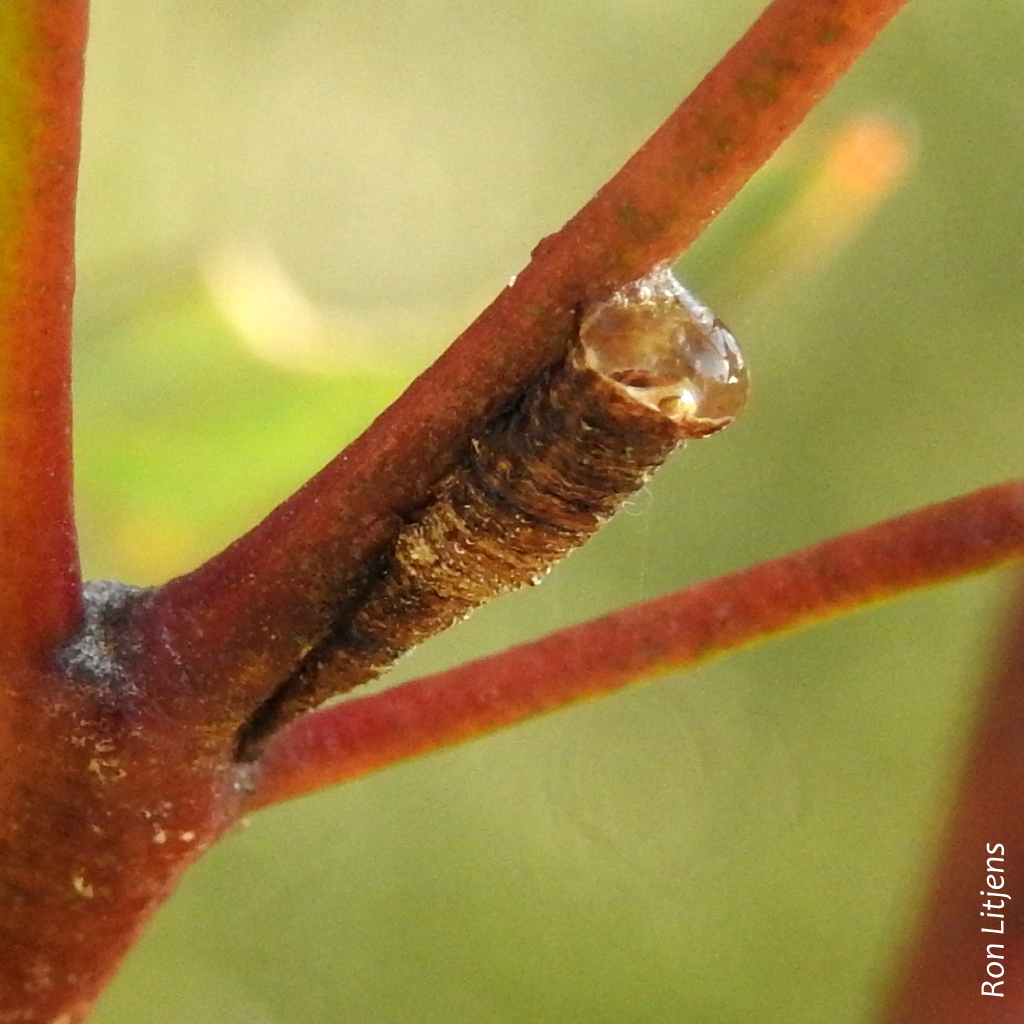 Not all spittlebugs however live in the froth and bubble. There is a small family of spittlebugs known as Tube Spittlebugs that suck the sap of eucalyptus trees. They extract calcium from the sap and construct a calcareous tube or cone that is attached to the tree, pictured right. The cone is filled with excreted fluid in which the spittlebug lives. The nymph has to leave the cone to moult at which time it creates a temporary foam ‘dressing room’ for itself to change in.