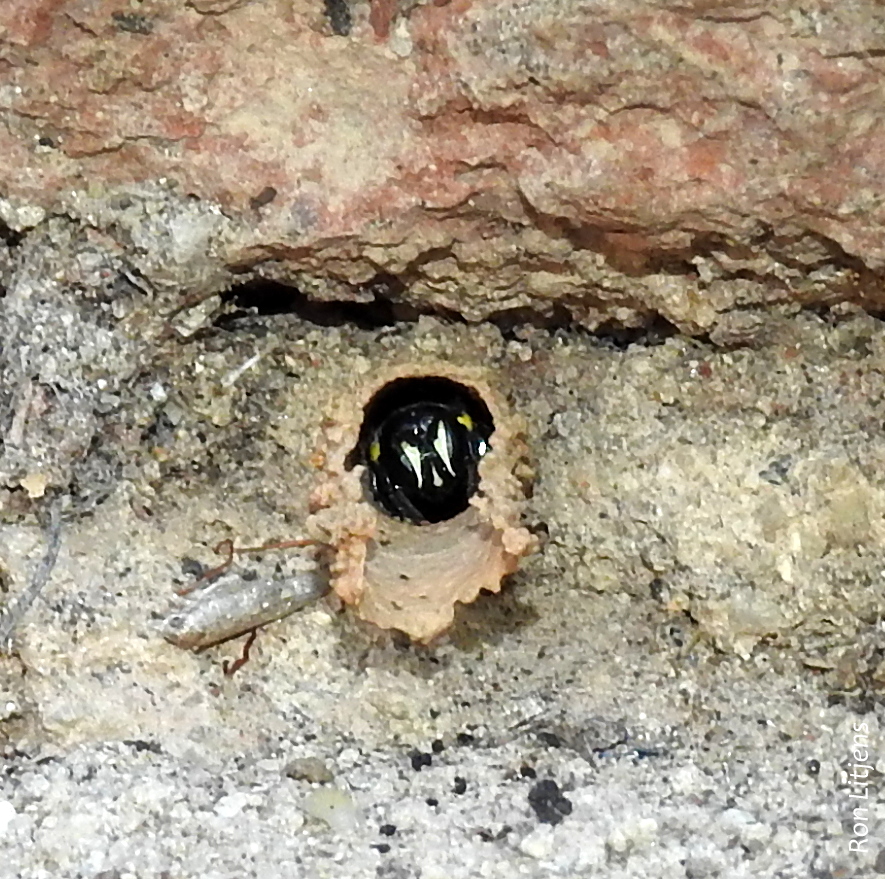 These bees individually build nests to house their young. The Blue-banded Bee (Amegila sp.) for example builds its nest as a tunnel in the ground (or in the lime mortar of very old building, click HERE to view). Each egg is provisioned with a pollen food store and sealed with a series of sealed cells filling the tunnel. Other species bore holes in wood or in the fleshy stems of plants. It’s a lot of work.