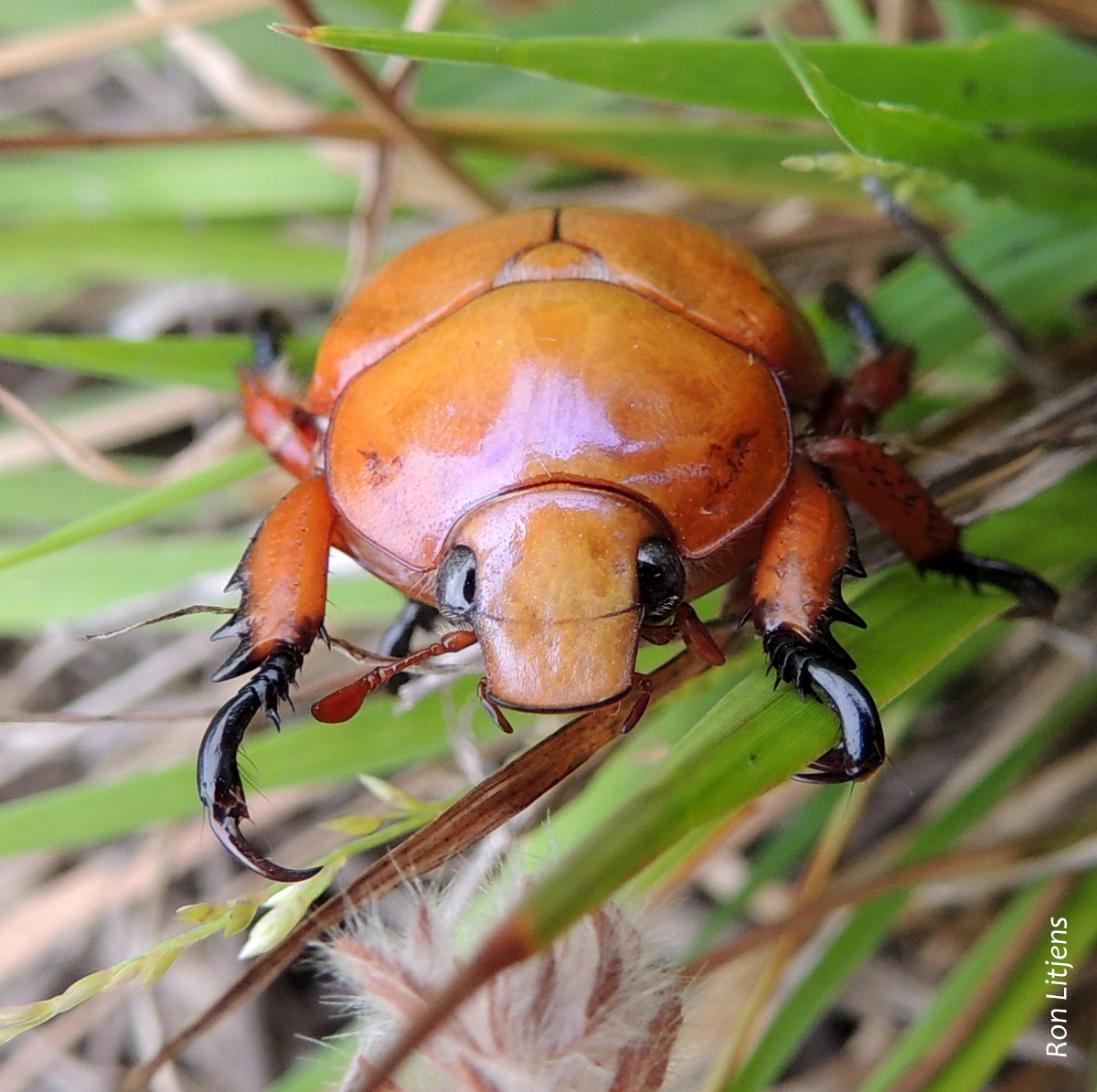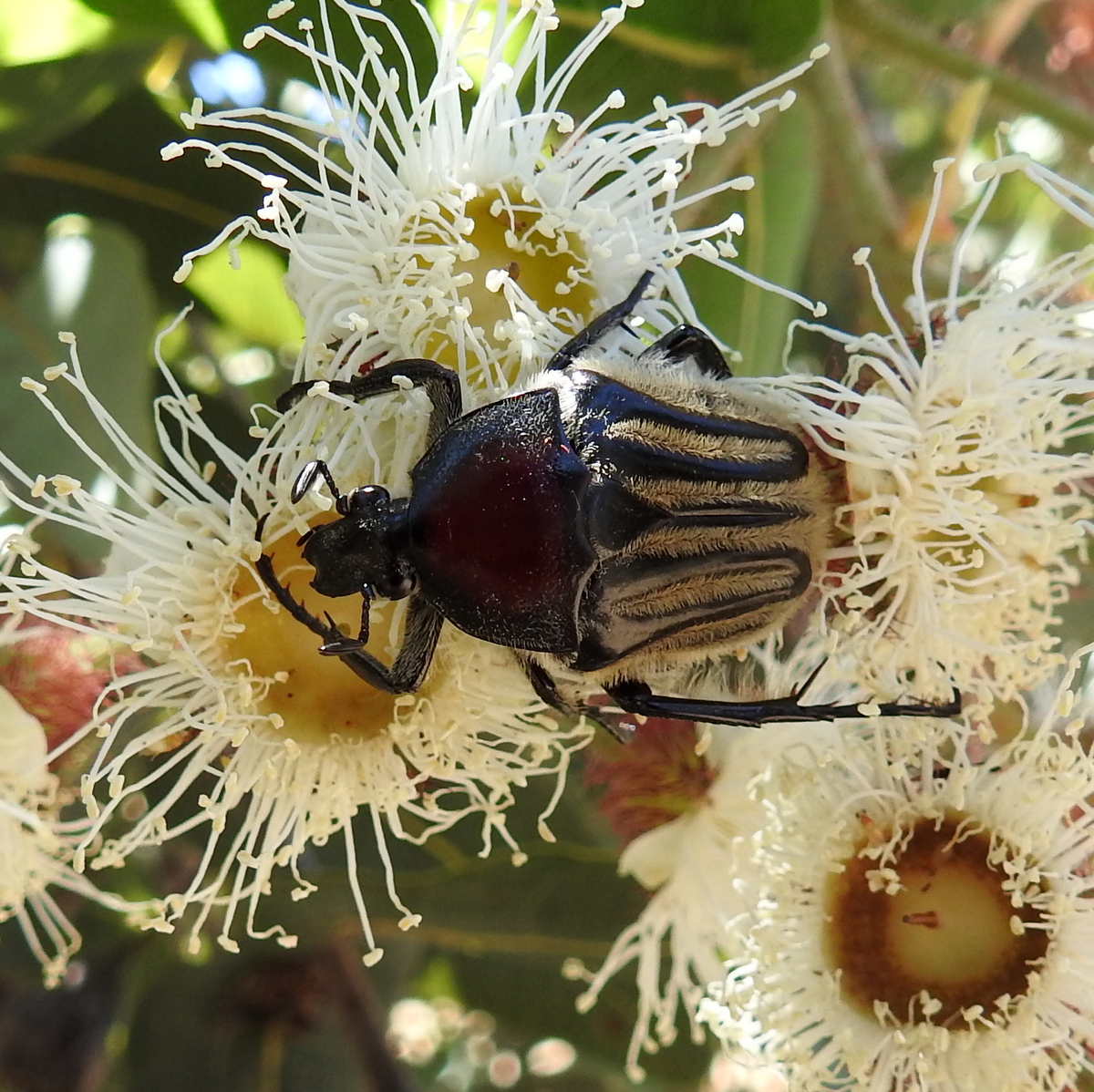 And this time of year would not be complete without a mention of the Christmas Scarab (Anoplognathus sp.) pictured below. Not a flower chafer, it is a nocturnal feeder causing the characteristic shredding of Eucalyptus leaves, a serious problem when beetle numbers get out of control.