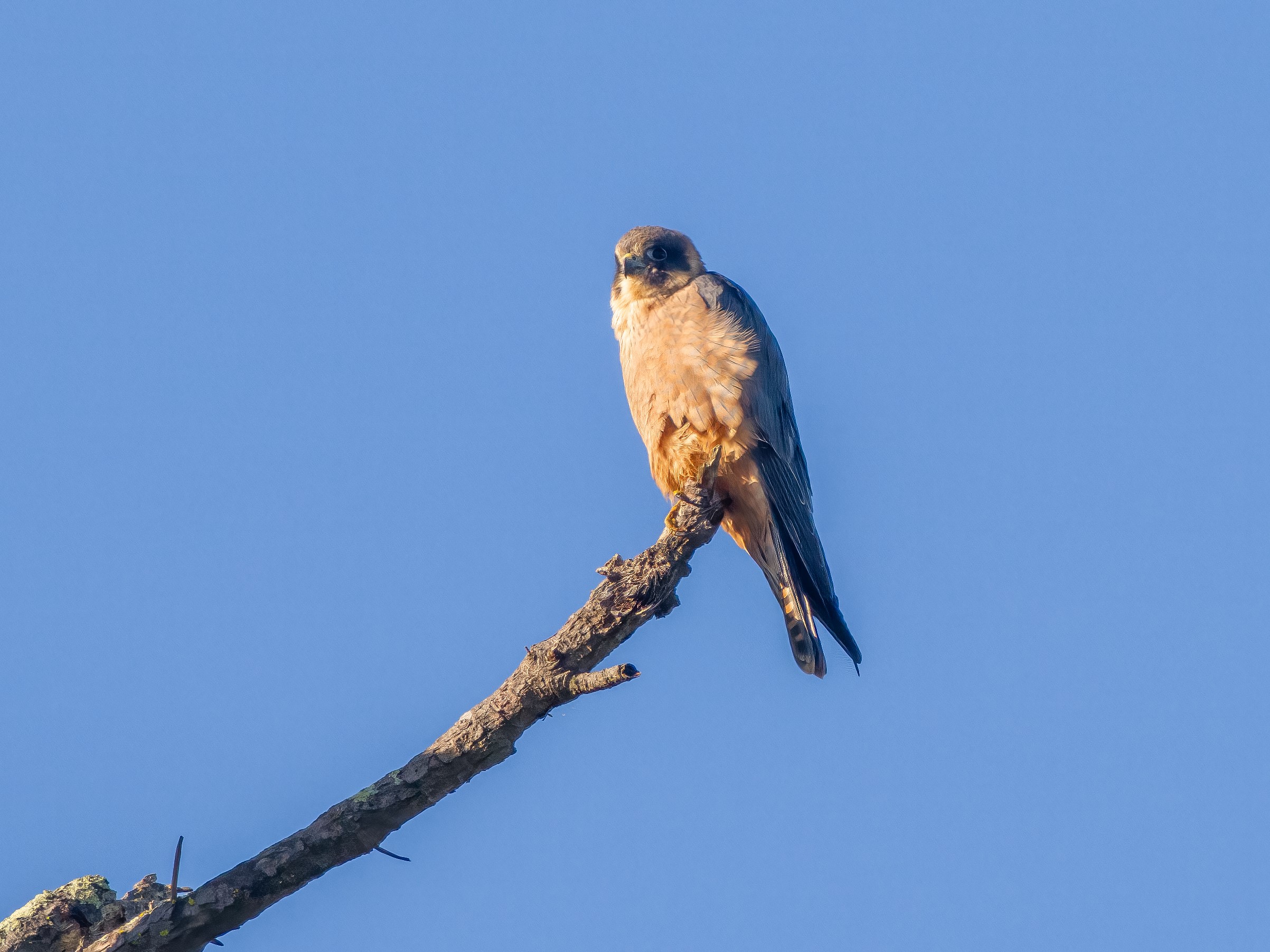 The Australian Hobby (Falco longipennis) is a peregrine mini-me. It looks like a peregrine but smaller and more tawny-coloured; and it hunts like a peregrine but, being smaller, is even more aerobatic and skilful. A friend described watching one chasing a bat at dusk, and bats are incredible flyers (it escaped). The only successful strike I have witnessed was a hobby in Melbourne that picked out a starling from an airborne flock. They appear in our district usually dashing through the air, so hard to photograph unless one catches them perched.